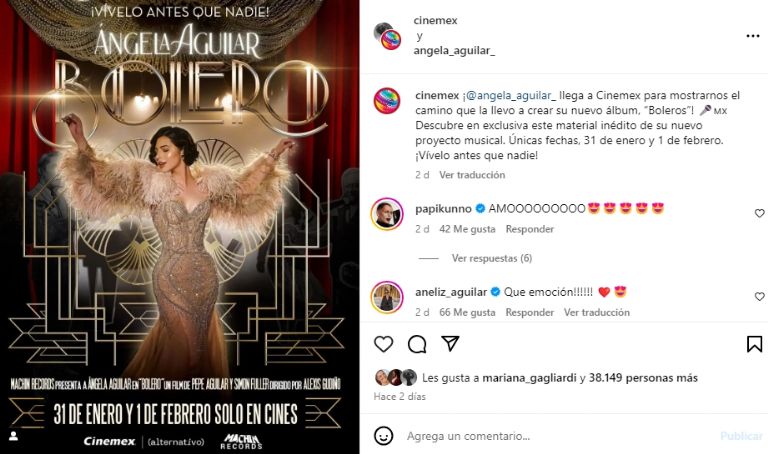 Ángela Aguilar así como Los Tigres Del Norte, llevará su trabajo al cine y presentará una película documental en donde dará a conocer el proceso creativo para la realización del disco “Piensa en mí”, así lo dio a conocer a través de sus redes sociales.